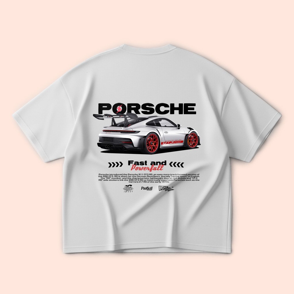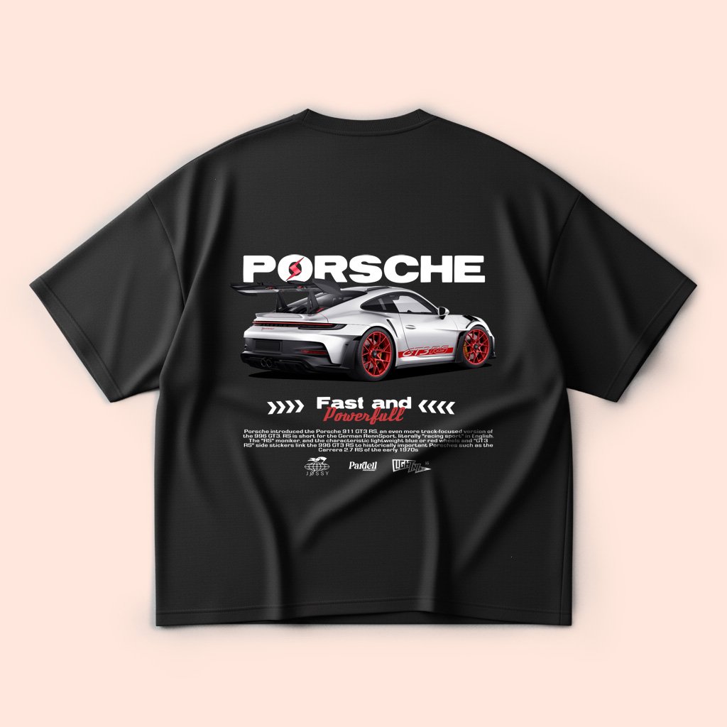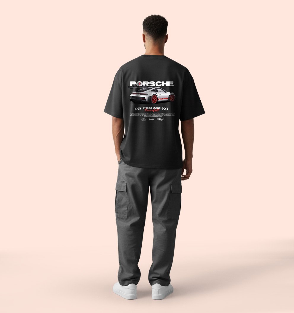 تيشيرت اوفر سايز قطن 100% بطباعة تصميم بورش بشكل مميز